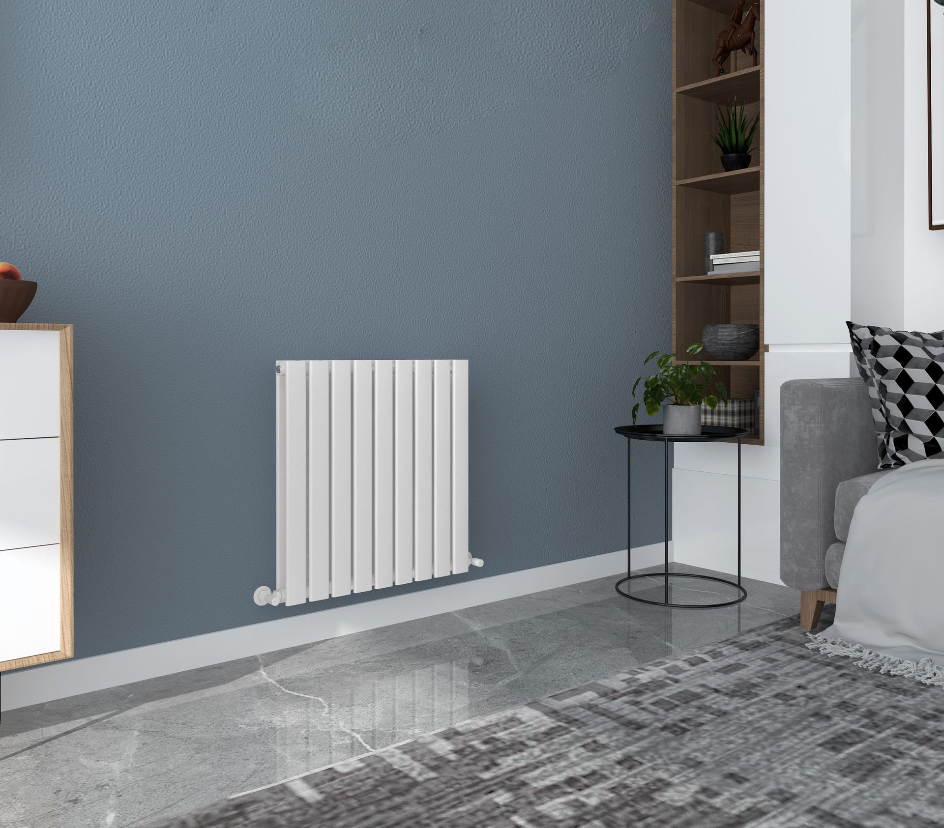 Beautifully crafted designer double flat panel horizontal radiator featuring a sleek modern look, whilst providing exceptional heat output that creates a cosy environment. Double “powder coated” in matt white for the long-lasting quality finish.
