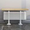 A distinctive style and an absolute eye catcher. Perfect for hallways, conservatories, and bathrooms. This stylish bench radiator creates a place to sit and stay warm, providing exceptional heat output. Double powder coated in white for the long-lasting quality finish.